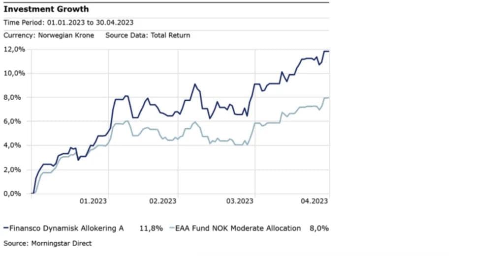 Vi ser på avkastningen vår etter fire måneder av 2023, og sammenligner den med blant annet verdensindeksen.