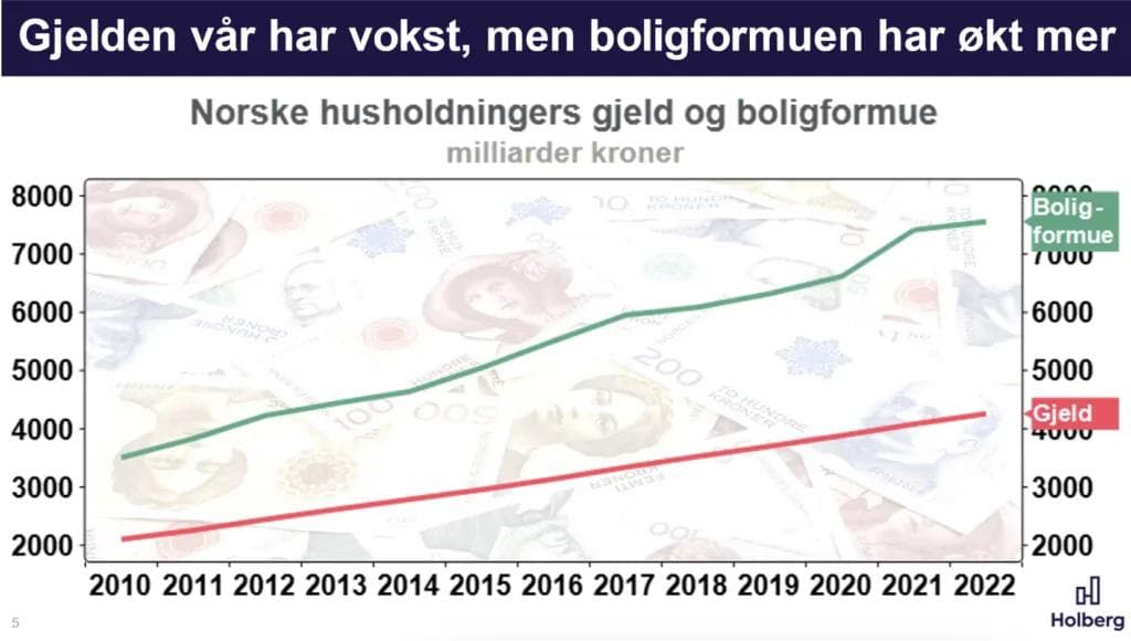 Konsekvensen av fallende NOK er også at vi importerer inflasjon, noe som presser Norges Bank opp i et hjørne. Importert inflasjon utgjør ca. en tredjedel av totalinflasjonen i Norge. Jo mer NOK faller, jo dyrere blir varene vi importerer, målt i NOK. Norges Bank blir dermed nødt til også å forholde seg til svekket NOK, og alt annet likt legger kronesvekkelsen press på Norges Bank til å heve renten mer enn den ellers ville gjort.Norge har en liten og åpen økonomi, og vi er avhengige av internasjonal handel, lov og orden. Norge preges også av at mange av oss eier vår egen bolig, og har høy boliggjeld. Vi har et veldig lavt innslag av fastrentelån, og det gjør norske husholdninger ekstra sårbare for renteøkninger. Foreløpig ser det ut som renteøkningene absorberes ganske greit av norske husholdninger, men vi tærer på oppsparte midler fra pandemien. Risikoen for rentene kan fort være på oppsiden, det gjelder både internasjonalt og i Norge. Og dersom inflasjonen biter seg fast, og vi får enda høyere renter enn hva sentralbanken nå legger til grunn i sin rentebane kan det treffe mange av oss ganske hardt.
