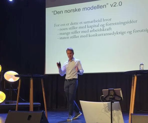 – For oss er den norske modellen 2.0 et samarbeid hvor noen stiller med kapital og forretningsidéer, mange stiller med arbeidskraft – og staten stiller med konkurransedyktige og forutsigbare rammevilkår, sier Christian Kallevig Arnesen, partner i Finansco.