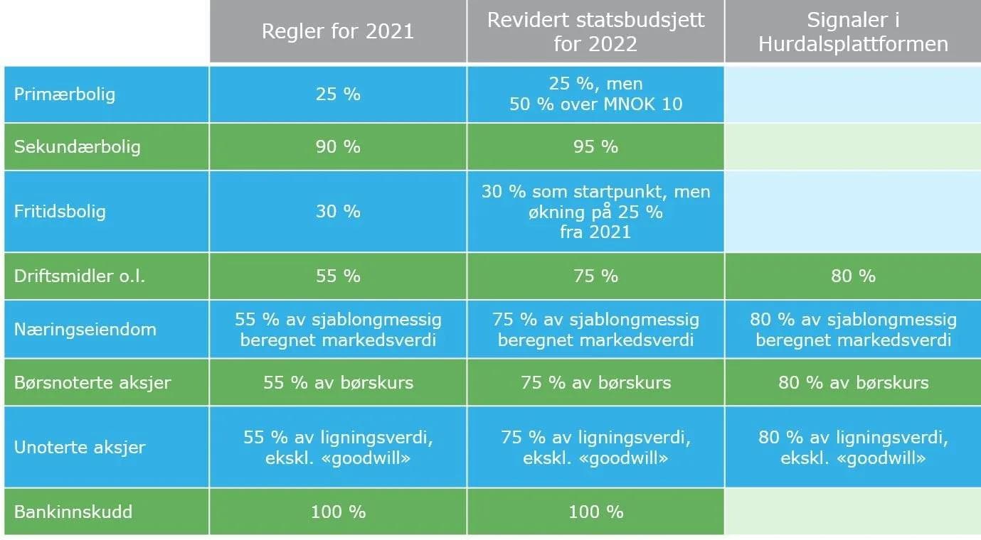 I det reviderte statsbudsjettet for 2022 er verdsettelsen foreslått økt til 75 % av beregnet formuesverdi.