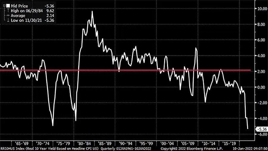 Tabellen under er fra USA, og viser ti års statsrente fratrukket total inflasjon:
