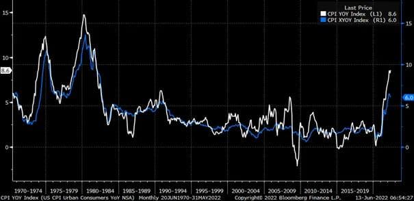 Inflasjonstallene som rapporteres måned for måned ser ikke ut til å rikke seg fra nivåer som vi må godt over 40 år tilbake for å finne maken til. For å illustrere dette, har jeg funnet noen grafer som viser kjerne- og totalinflasjon i henholdsvis USA og Norge. Grafene tegner litt forskjellige bilder av utviklingen – og forventningene – på hver side av Atlanterhavet: