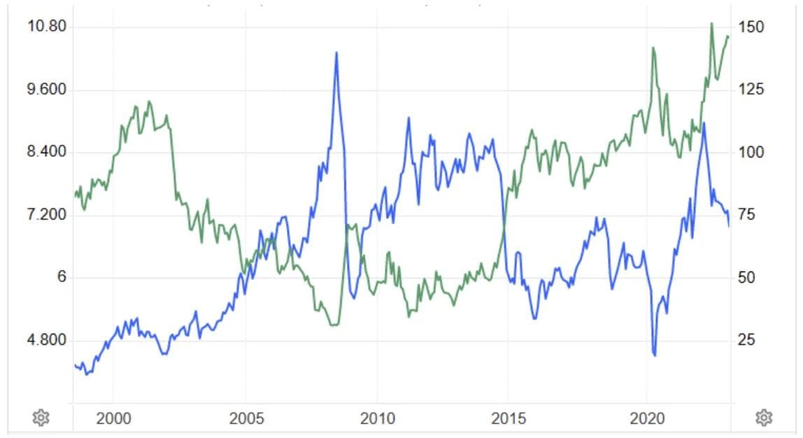 Det har kun vært én uvanlig periode, fra begynnelsen av 2021 til midten av fjoråret, da oljeprisen og kronekursen ikke beveget seg som beskrevet over. Da doblet nemlig oljeprisen seg, samtidig som kronen svekket seg med 15%. Hvorfor dette skjedde har jeg ikke funnet noen god forklaring på, uten at det endrer mitt grunnsyn på sammenhengen mellom kronekurs og oljepris.
