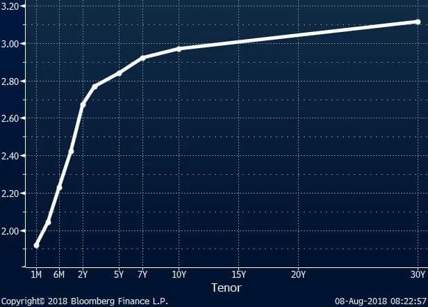 En indikator som har fått et skjær av pålitelighet, spesielt for USA, er helningen på rentekurven. Rentekurven og dens stadig flatere helning har fått en økende oppmerksomhet i det siste hos makroøkonomer og investorer