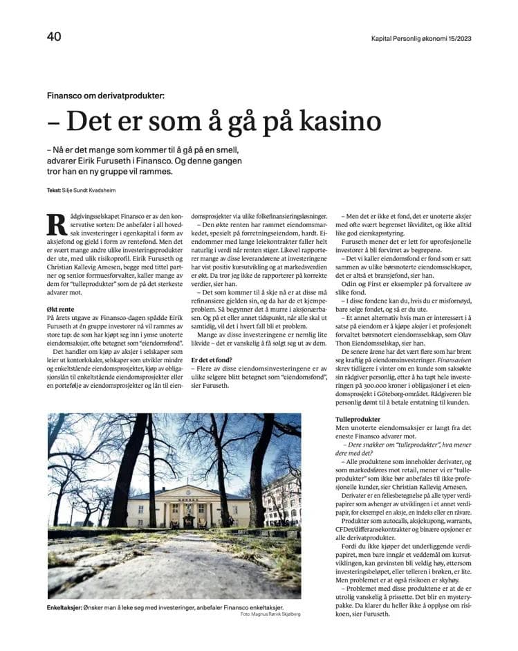 – Ønsker du en uforpliktende prat med en av våre dyktige formuesforvaltere kan du fylle ut kontaktskjemaet, så vil vi ta kontakt med deg i løpet av kort tid.
