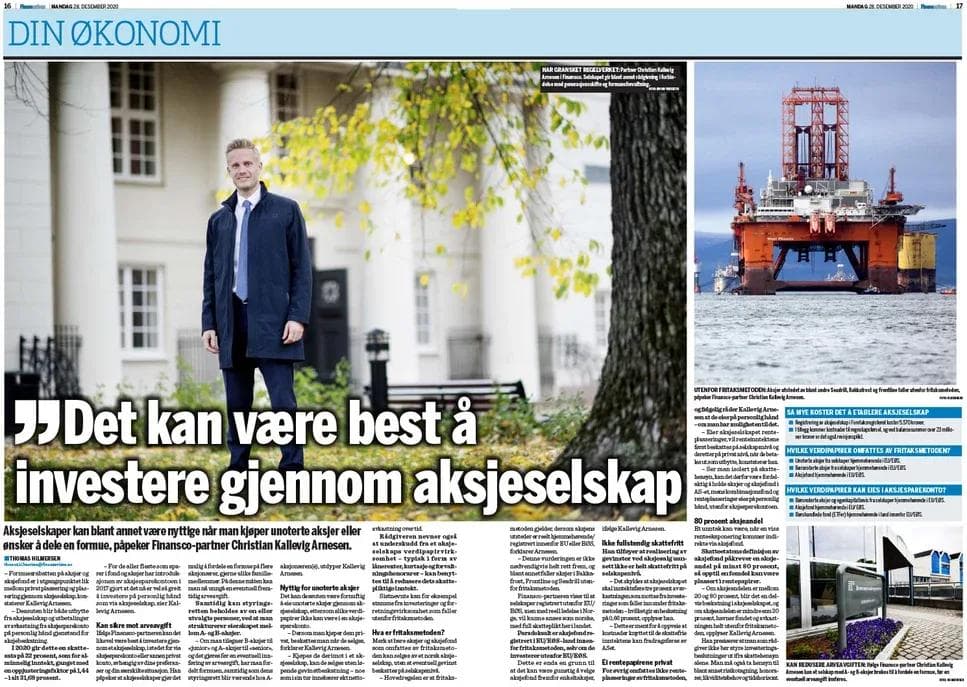 Aksjeselskaper kan blant annet være nyttige når man kjøper unoterte aksjer eller ønsker å dele en formue, påpeker Finansco-partner Christian Kallevig Arnesen.