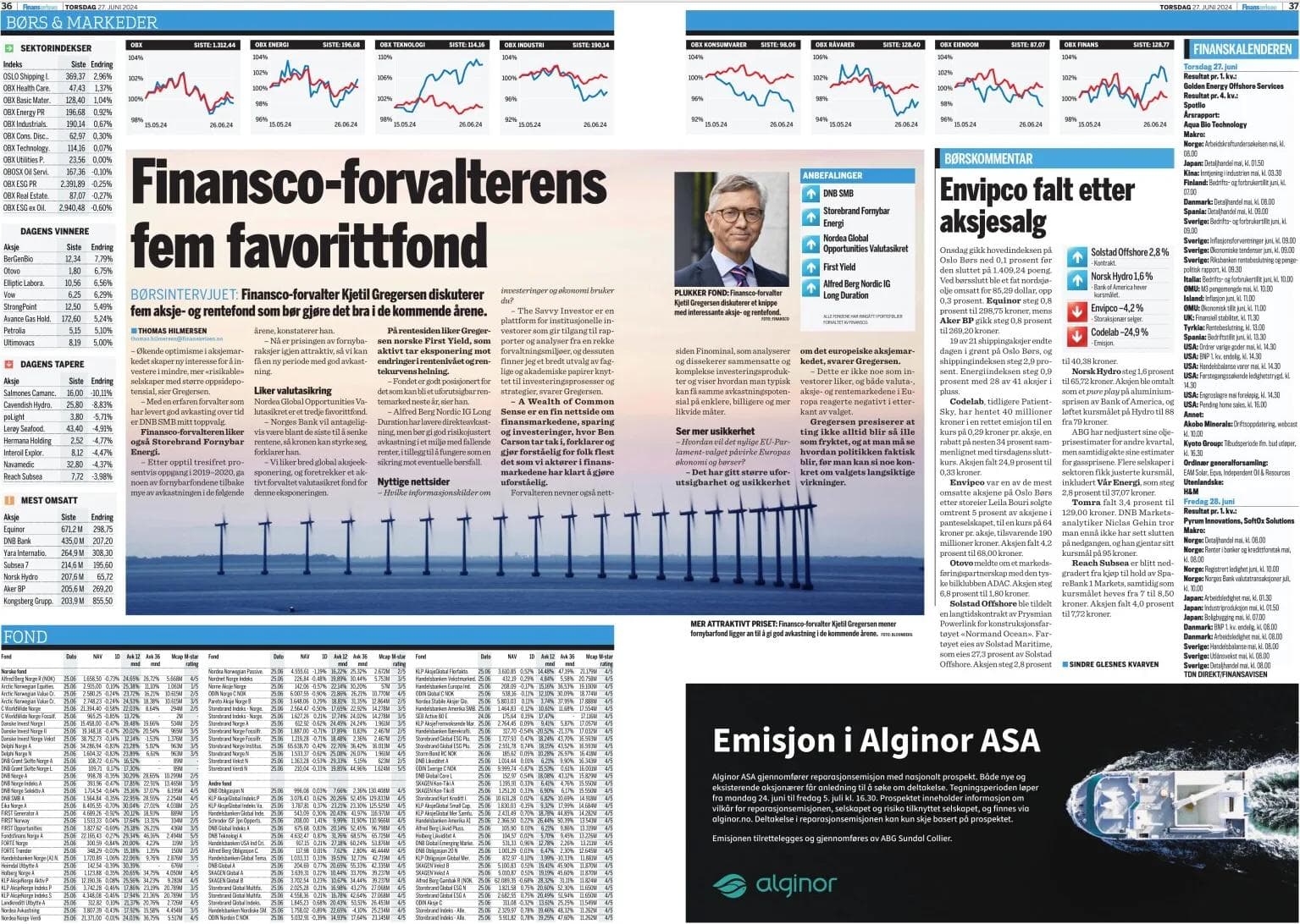 Finansco-forvalter Kjetil Gregersen diskuterer fem aksje- og rentefond som bør gjøre det bra de neste årene. Finansavisen, 27. juni.