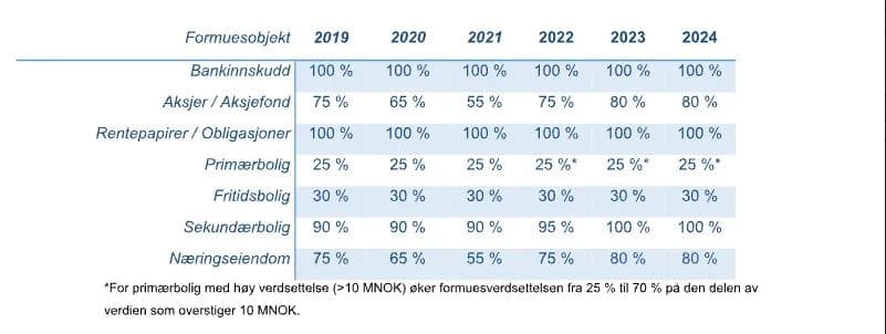 Ulik verdsettelse av ulike formuesobjekter