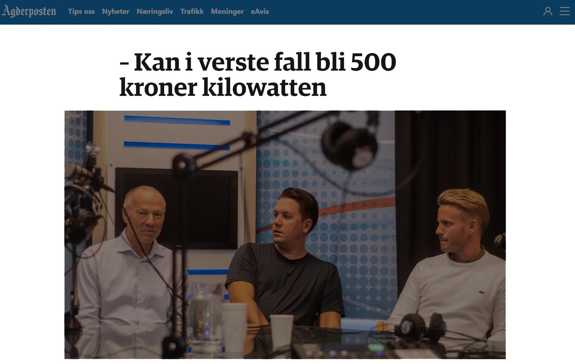 Podcast: Partner Christian Kallevig Arnesen gjestet Agderposten økonomi-podcast, sammen med kraftanalytiker Olav Botnen fra Volue Insight. De diskuterte temaer som er på manges lepper for tiden, nemlig strømkrise, rentehevinger fra Norges Bank, økte kostnader for folk flest, og noen råd om hvilke grep man selv kan ta rundt eget strømforbruk og egen økonomi.
