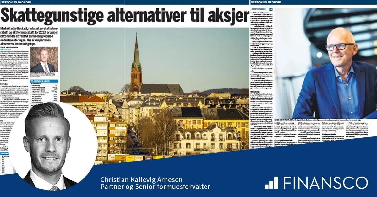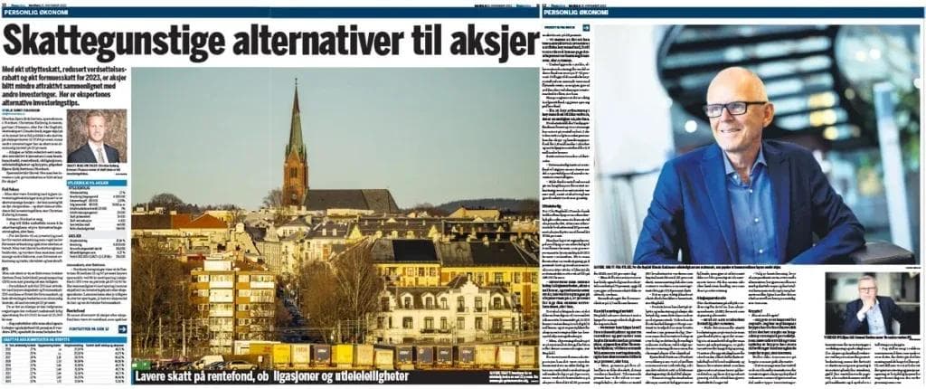 Med økt utbytteskatt, redusert verdsettelsesrabatt og økt formuesskatt for 2023, er aksjer blitt mindre attraktivt sammenlignet med andre investeringer. Finansavisen fikk ekspertenes alternative investeringstips. – Man skal være forsiktig med å gjøre investeringsbeslutninger som primært er av skattemessige hensyn – det kan nemlig bli en dyr «besparelse» – og skatt alene er således et feil investeringsfokus, sier Christian Kallevig Arnesen.